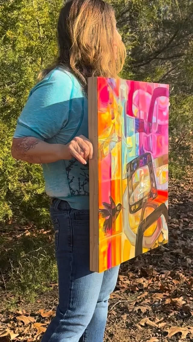 I create compositional rhythms, often combining flowers and nature-inspired imagery mixed with geometric shapes and atmospheric space. I consider my process to be an Active Meditation. My paintings are inspired by nature and the comingling of abstract elements and movement between layers. Each piece begins with observation and evolves into a more internal exploration.